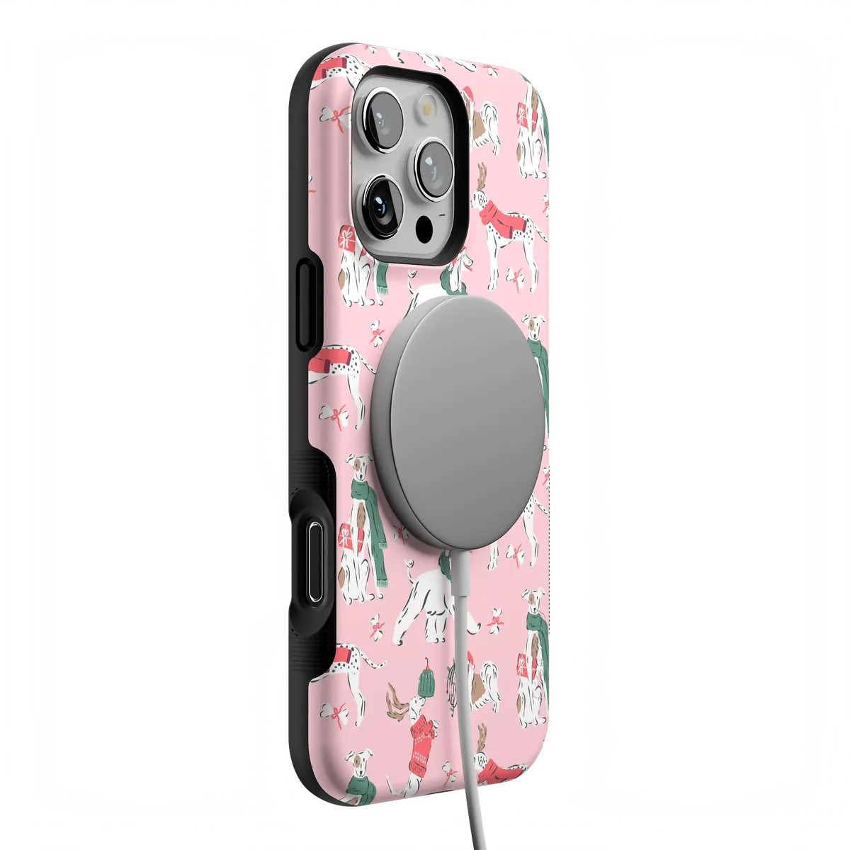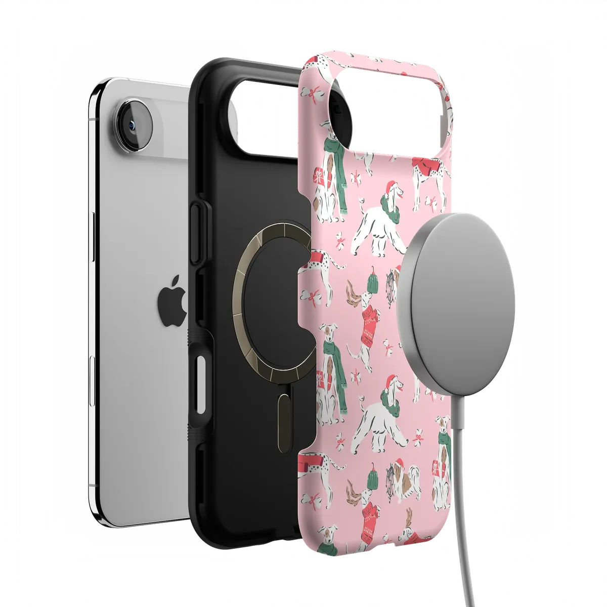 another style within 30 days of receiving your order.Dogs make every season better — especially this one. The Winter Woofs Case celebrates your favorite furry friends decked out in holiday scarves and cheer. Built with MagSafe-compatible magnets and reliable drop protection, it’s made for cozy walks and coffee runs alike.